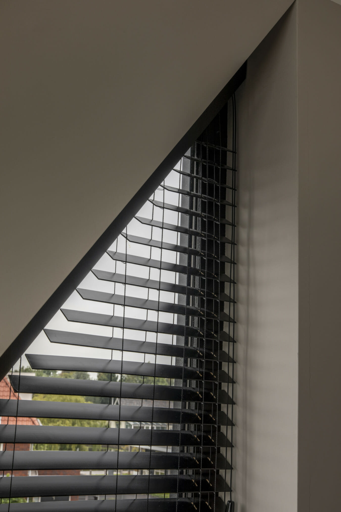 Aluminium- en houten jaloezieën zijn al jaren populair. Dit komt door de praktische eigenschappen en doordat ze het daglicht op een prachtige manier filteren. Door de lamellen te kantelen, creëer je een idyllisch lijnenspel. Bovendien zijn de jaloezieën een prima raambekleding voor driehoekige ramen. Aan de schuine kant verspringen de lamellen trapsgewijs. Je kunt de jaloezieën tot aan de rechte zijde optrekken.