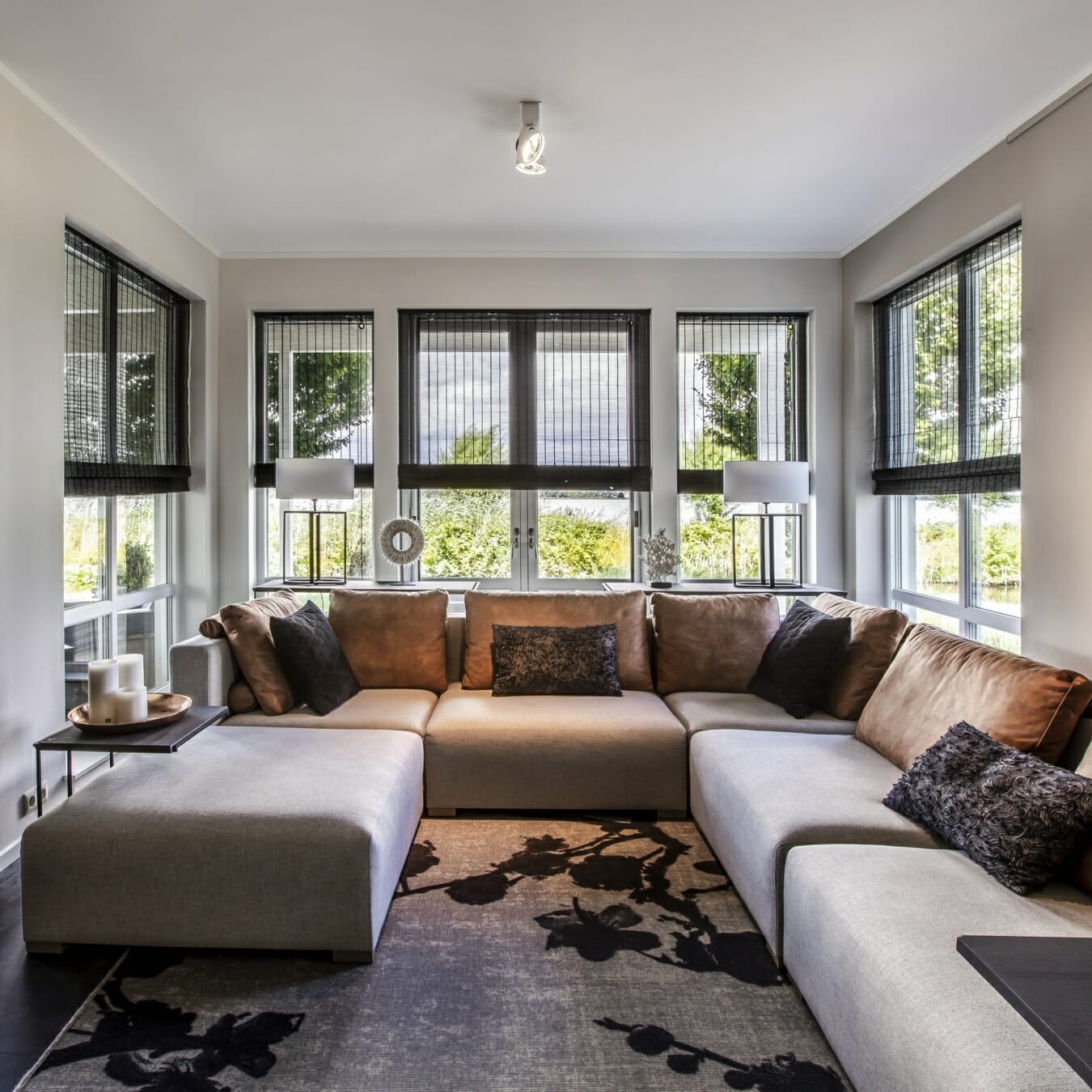 Geweven hout is een populaire raamdecoratie en uitstekend geschikt voor de net zo geliefde draai-kiepramen. Mooi gefilterd licht in combinatie met ventilatie en ook praktisch in onderhoud.